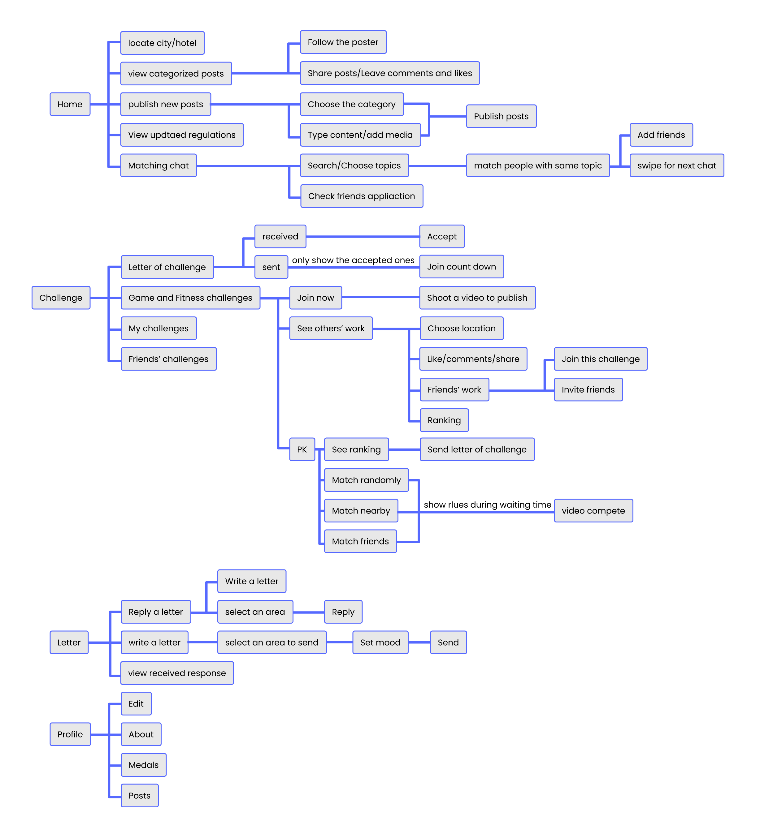 At this stage, I sketched out all potential features for a round of user testing, rather than mapping the full user flow. Based on the feedback received, I could then determine which features to keep, remove, or combine.